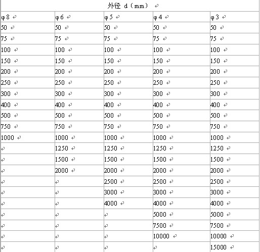 外徑和名義長度標(biāo)準(zhǔn)規(guī)格