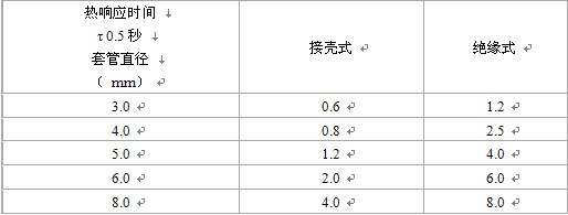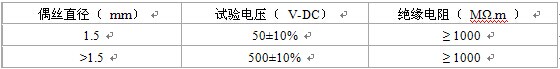 當周圍空氣溫度為 20±1.5℃,相對濕度不大于80%時,絕緣型鎧裝熱電偶的偶絲與外套管之間的絕緣電阻值應符合下表的規(guī)定。